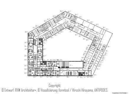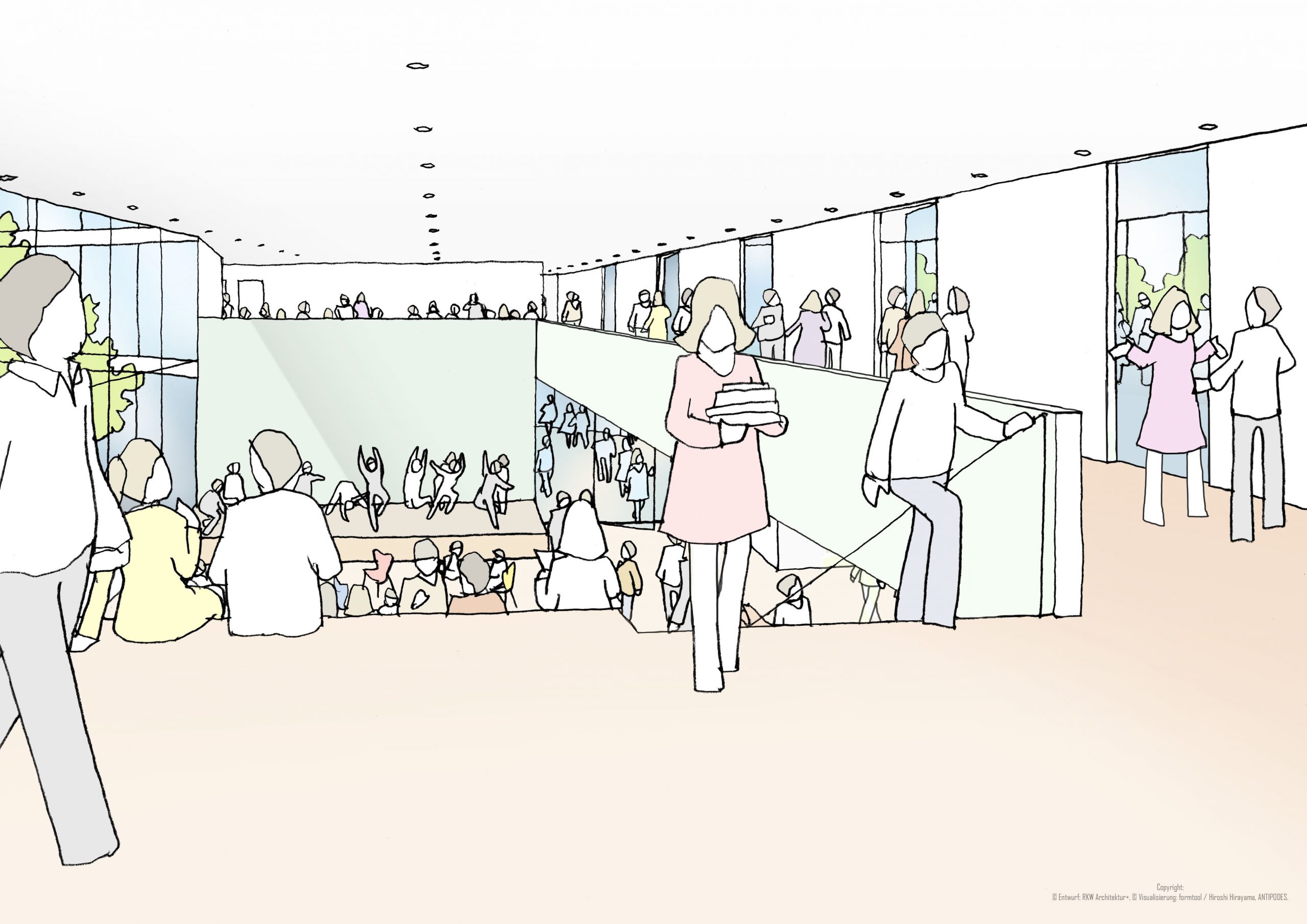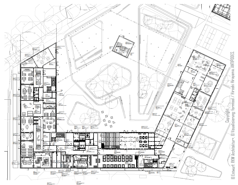 Die sechs­zügige Gesamtschule der Sekundarstufe I ist für 1.300 Schülerinnen ausgelegt, verfügt über drei Vollgeschosse und erreicht einen Übergang von 50 % in die gymnasiale Oberstufe (G9). Ergänzend entsteht eine Sporthalle mit vier Übungseinheiten und einer Tribüne für 350 Zuschauerinnen. Die Tragkonstruktion mit Flächen von 27.223 m² Grundstück, 20.336 m² Schulgebäude und 4.001 m² Sporthalle ermöglicht flexible Grundrisse und ist auf Nachhaltigkeit ausgerichtet.